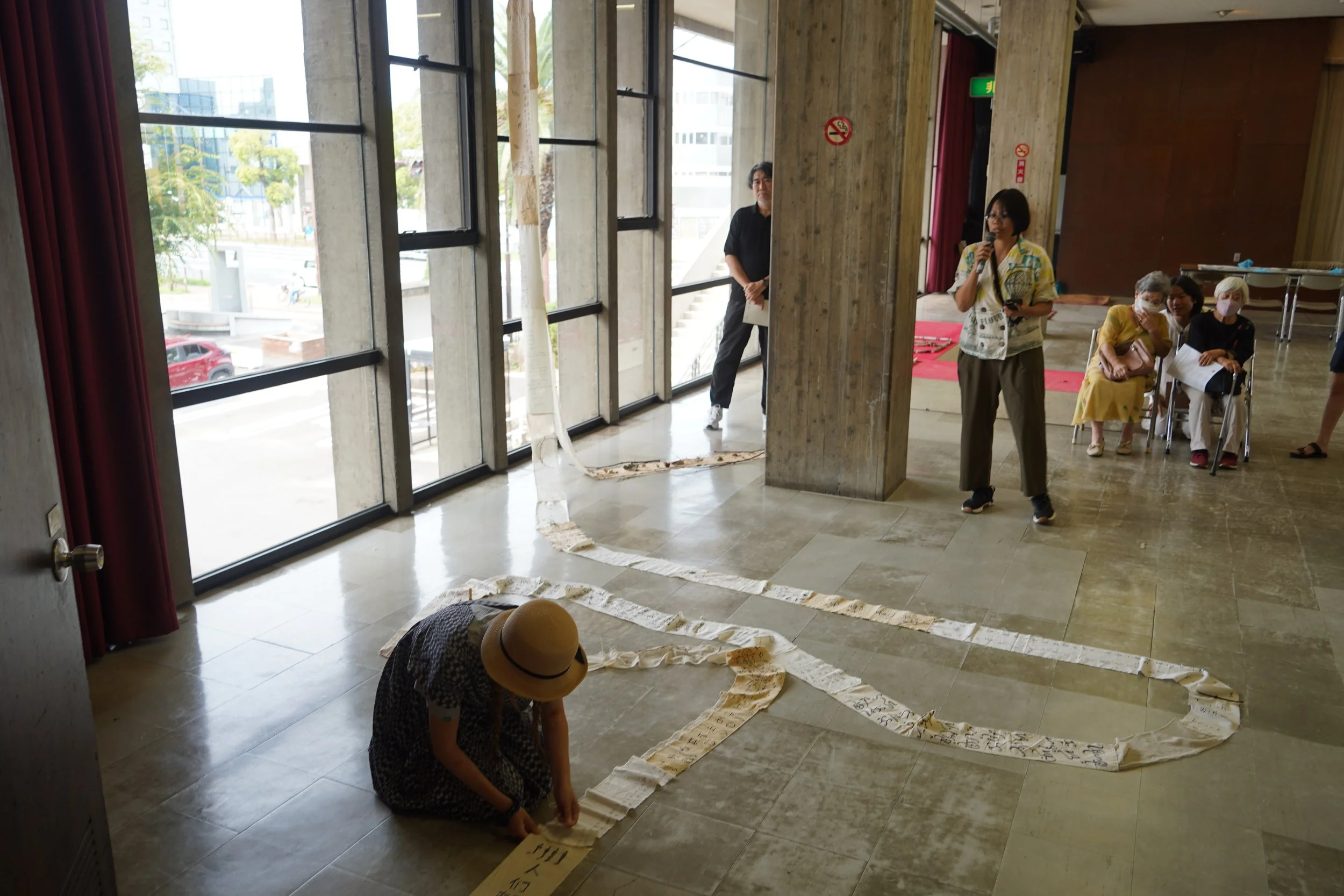 這些片段被一針一線地縫合,延展成一條近四十公尺的布卷,讓經驗、記憶與連結在其中緩緩交織。