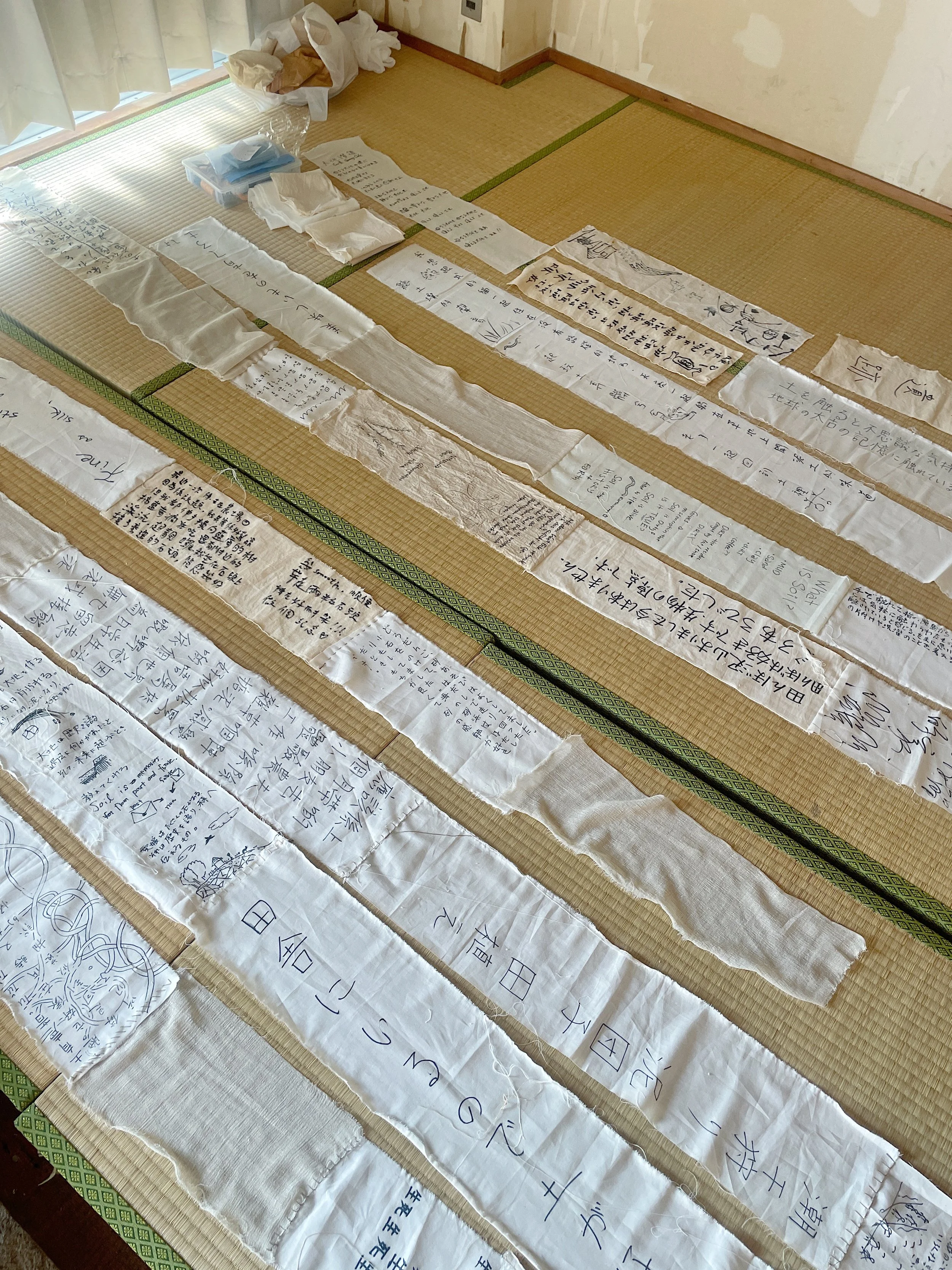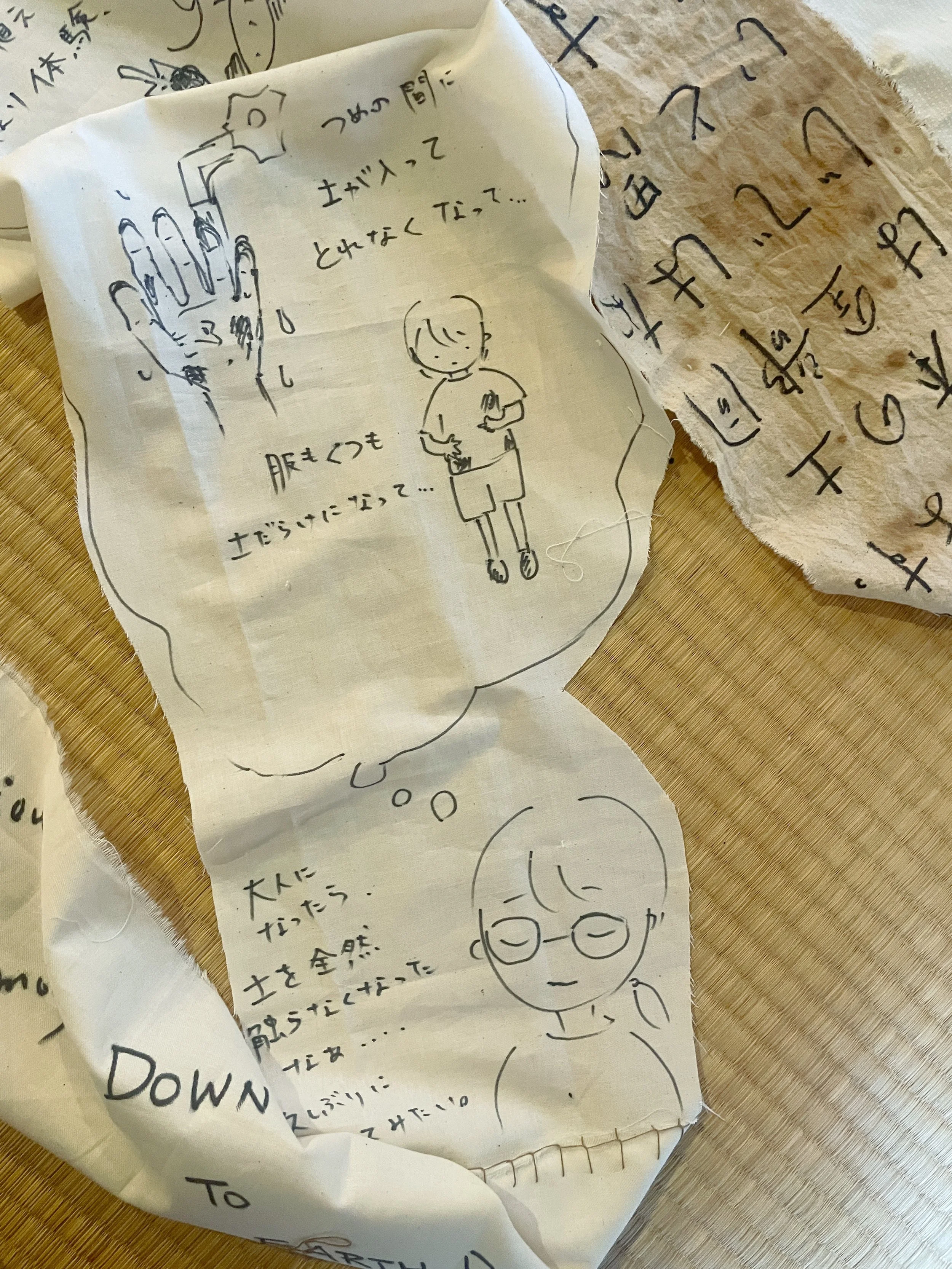 These fragments were gently stitched into a single fabric scroll, stretching nearly 40 meters, where experiences, memories, and connections slowly intertwined.